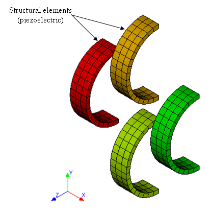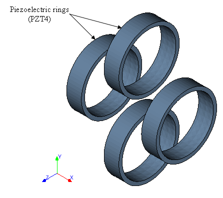 The PZT4 ceramic is modelled with 3D piezoelectric elements.