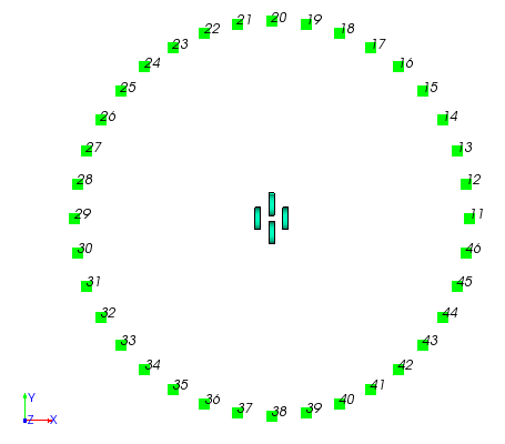 The excitation has been defined so that rings 1 and 4 are in phase; ring 2 is 90o behind and ring 3 is 90o in front. |
