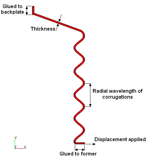 bending stiffness. Near maximum displacement as the corrugations begin to