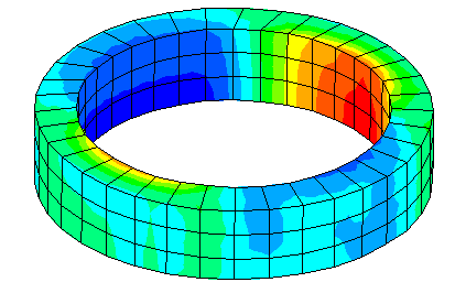 | Pressures calculated by the PAFEC-EHL analysis of the oil film may be saved and subsequently back-substituted into the PAFEC-FE analysis of the bearing housing. Plots and graphs of deformations and stresses may then be viewed. | |